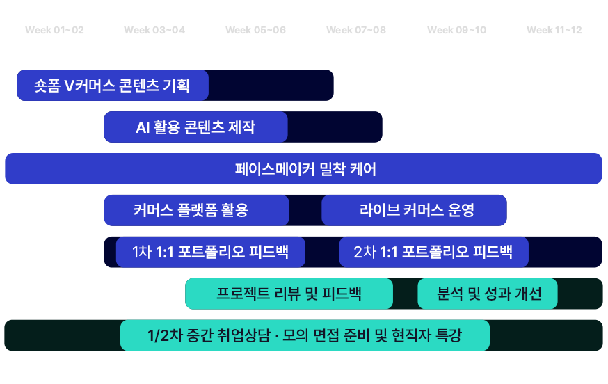 week 03~06 / week 07~10 : 커머스 플랫폼 활용 / 라이브 커머스 운영